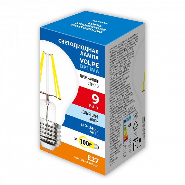 Главная Лампочки Лампа светодиодная филаментная Volpe E27 9W 4000K прозрачная LED-A60-9W/4000K/E27/CL/SLF UL-00008303