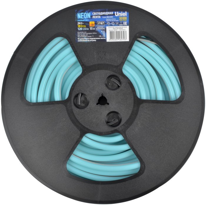 Главная Лампочки Светодиодная лента Uniel Neon ULS-N11-2835-120LED/m-8mm-IP67-DC24V-10W/m-15M-LIGHTBLUE катушка в герметичной упаковке