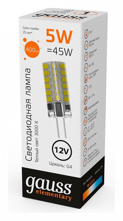 Главная Лампочки Лампа cветодиодная Gauss G4 3W 3000K прозрачная 18713