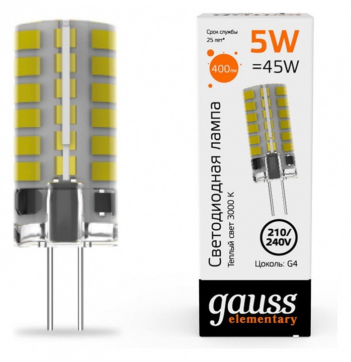Главная Лампочки Лампа cветодиодная Gauss G4 5W 3000K прозрачная 18015