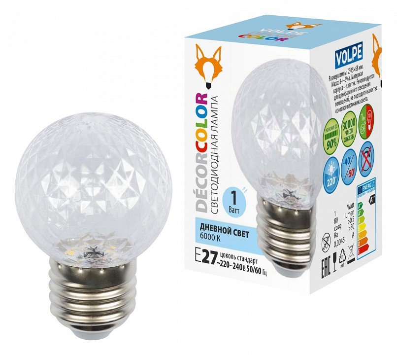 Главная Лампочки Лампа светодиодная Volpe DECOR COLOR E27 1Вт 6000K UL-00010065