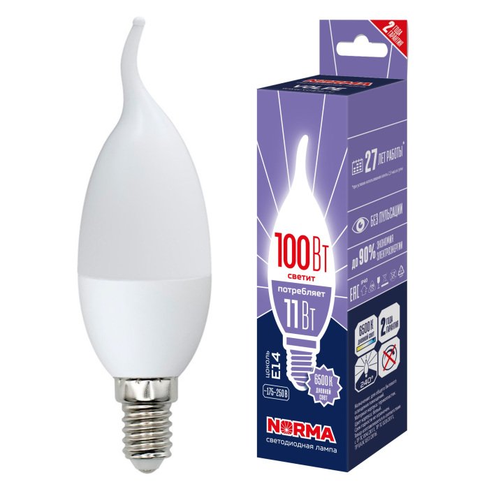 Главная Лампочки Лампа светодиодная Volpe E14 11W 6500K матовая LED-CW37-11W/6500K/E14/FR/NR UL-00010991