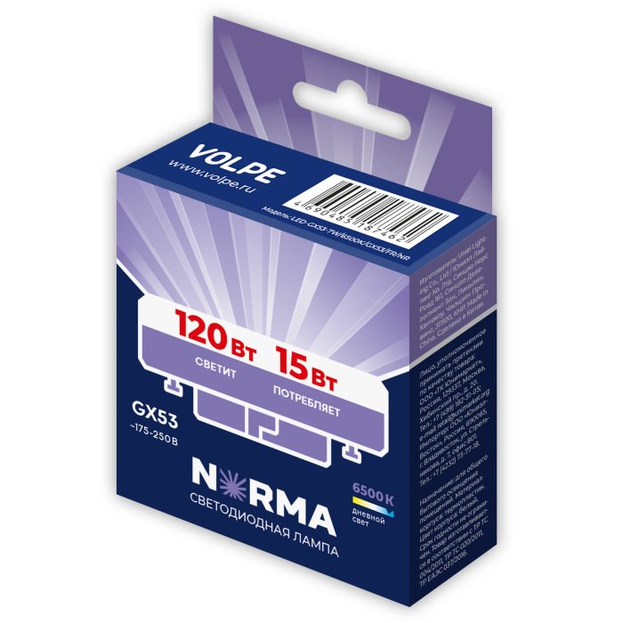 Главная Лампочки Лампа светодиодная Volpe GX53 15W 6500K матовая LED-GX53-15W/6500K/GX53/FR/NR UL-00011434