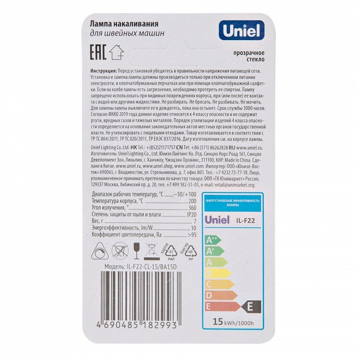 Станьте первым, кто оставит отзыв о товаре Набор из 3 ламп накаливания Uniel IL-F22 BA15d 15Вт K UL-00010984.