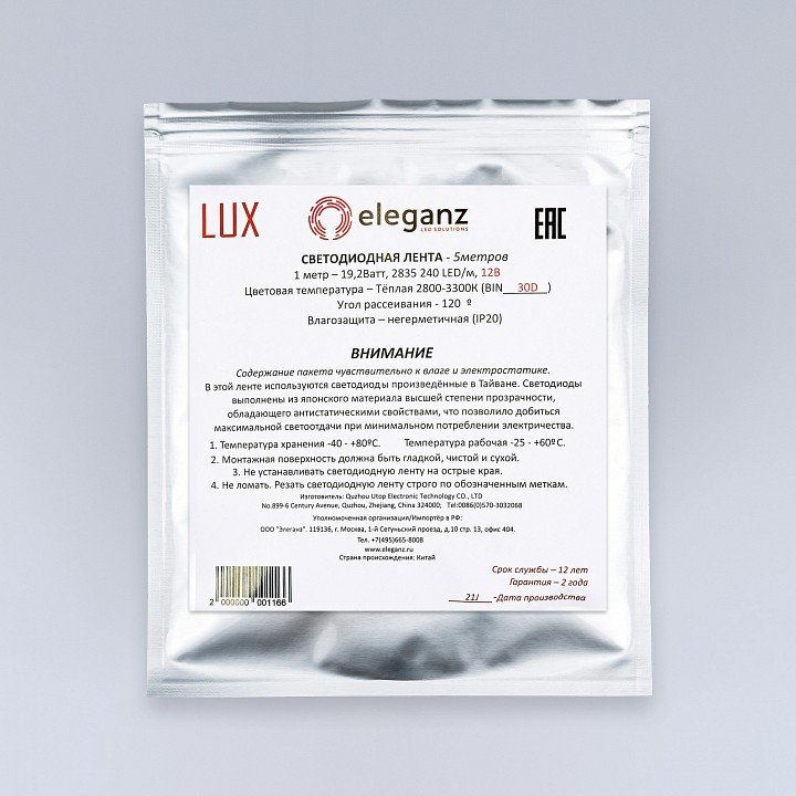 Станьте первым, кто оставит отзыв о товаре Лента светодиодная Eleganz LUX EL-LS-19WW.