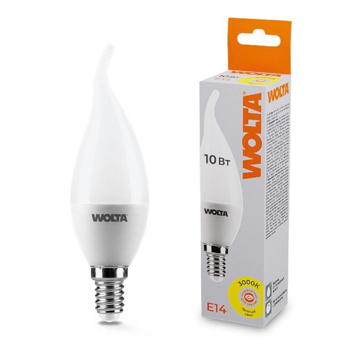 Главная Лампочки Лампа светодиодная Wolta E14 10Вт 3000K 25YCD10E14