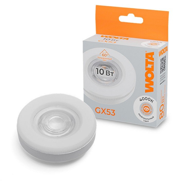 Главная Лампочки Лампа светодиодная Wolta GX53 10Вт 4000K WSTD-GX-10W4KGX53-L