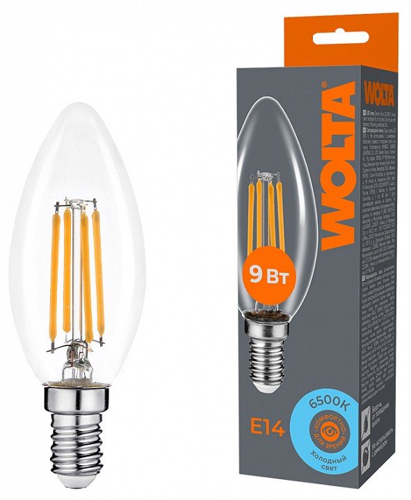 Лампа светодиодная Wolta E14 9Вт 6500K WF-C35-9W6KE14