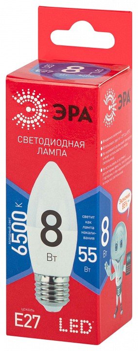 Главная Лампочки Лампа светодиодная Эра E27 8Вт 6500K LED B35-8W-865-E27 R