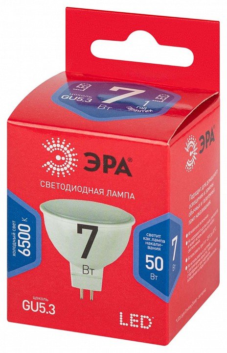 Главная Лампочки Лампа светодиодная Эра GU5.3 7Вт 6500K LED MR16-7W-865-GU5.3 R