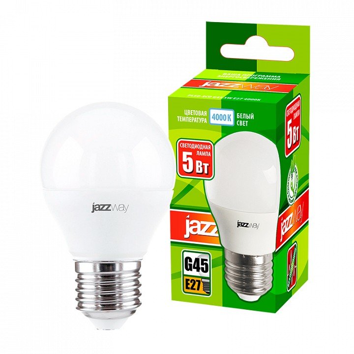 Главная Лампочки Лампа светодиодная Jazzway E27 5Вт 4000K PLED-ECO-G45 5w E27 4000K