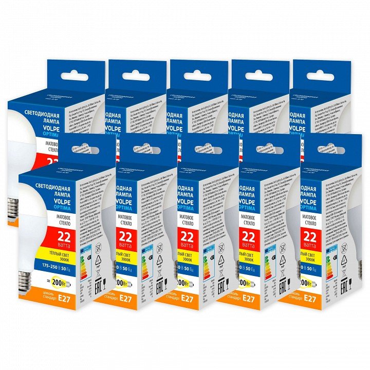 Главная Лампочки Набор из 10 ламп светодиодных Volpe OPTIMA E27 22Вт 3000K UL-00013836