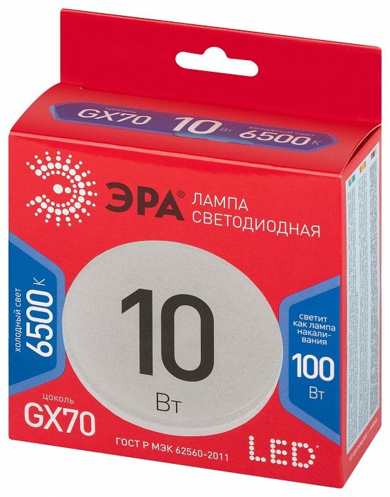 Главная Лампочки Лампа светодиодная Эра GX70 10Вт 6500K LED GX-10W-865-GX70 R