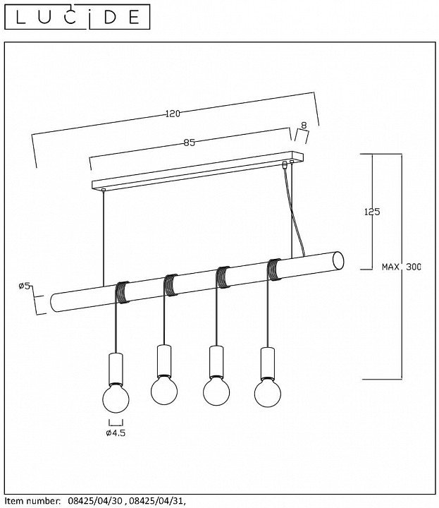 Станьте первым, кто оставит отзыв о товаре Подвесной светильник Lucide Jaime 08425/04/31.