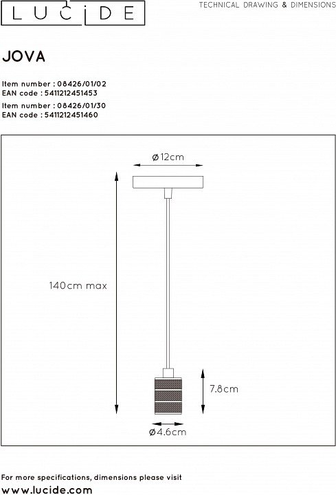 Станьте первым, кто оставит отзыв о товаре Подвесной светильник Lucide Jova 08426/01/02.