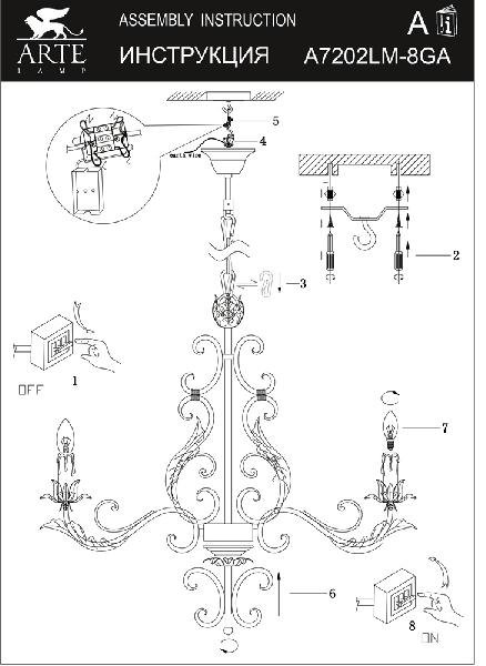 Станьте первым, кто оставит отзыв о товаре Подвесная люстра Arte Lamp Fregiato A7202LM-8GA.