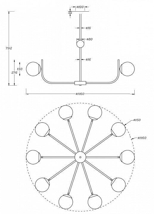 Тип крепления люстры: на штанге