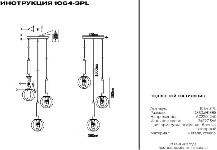 Наличие ламп в комплекте: лампы в комплект не входят