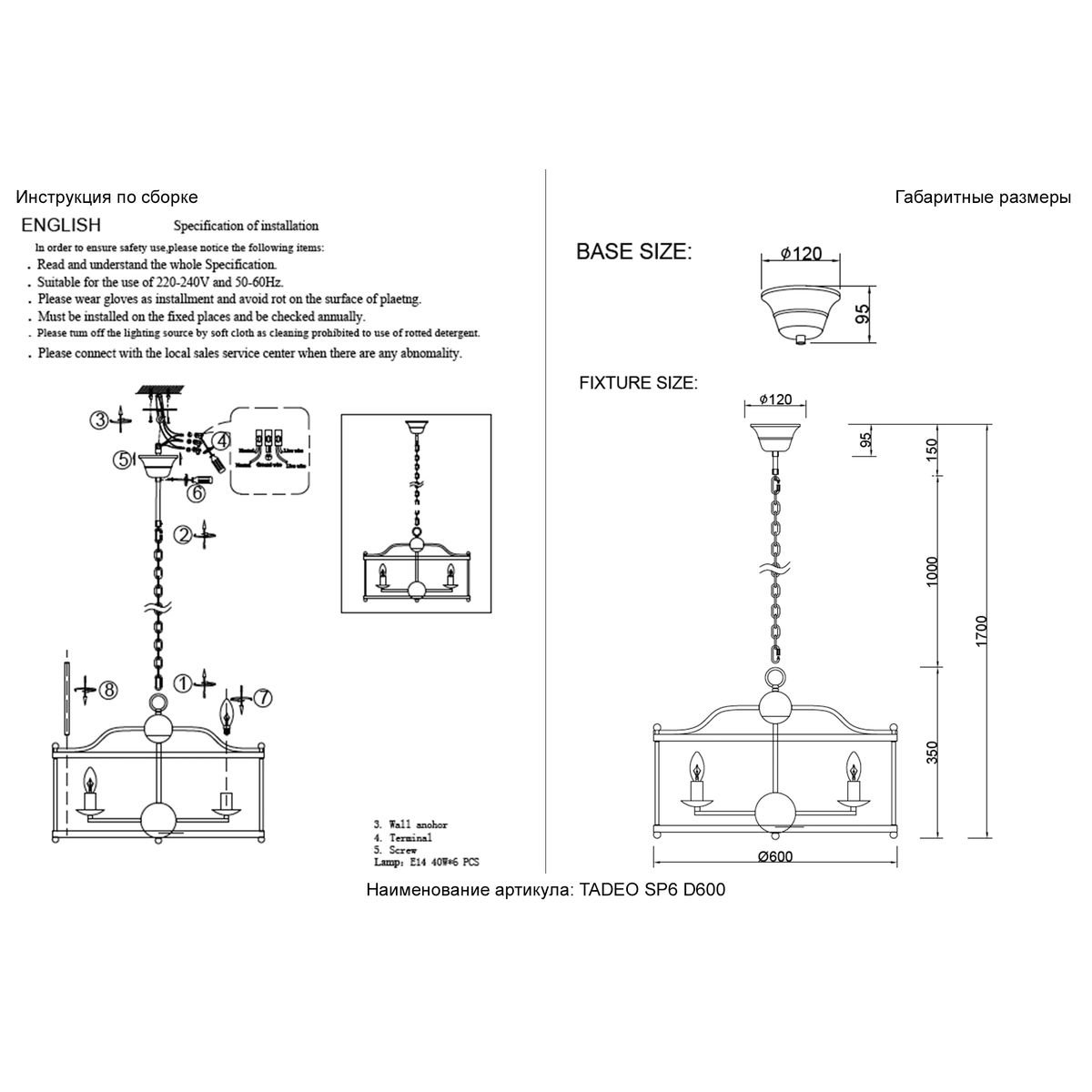 Тип светильника: подвесная люстра