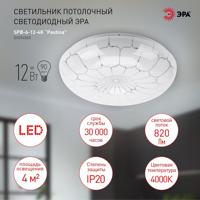 Главная Люстры и потолочные светильники Потолочный светодиодный светильник ЭРА SPB-6-12-4K Pautina круглый Б0054065