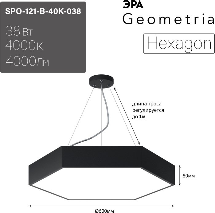 Станьте первым, кто оставит отзыв о товаре Подвесной светодиодный светильник Geometria ЭРА Hexagon SPO-121-B-40K-038 38Вт 4000К черный Б0050551.