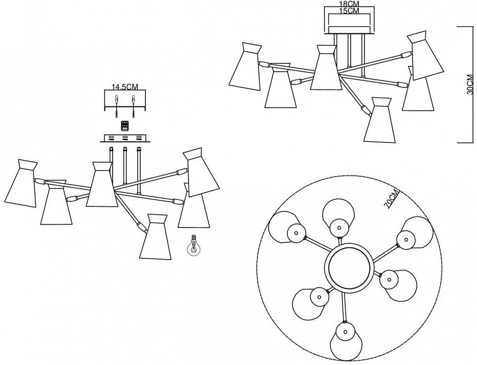 Основная форма светильника (Для подвесных люстр, потолочных люстр и подвесных светильников): Несколько плафонов