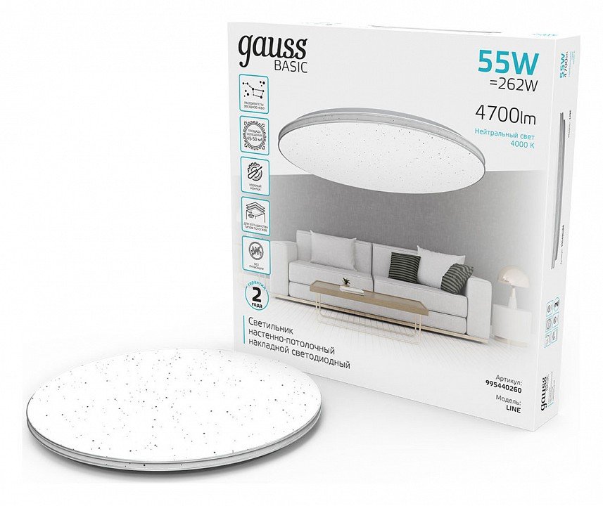 Главная Люстры и потолочные светильники Потолочный светодиодный светильник Gauss Basic Space Line 995440260