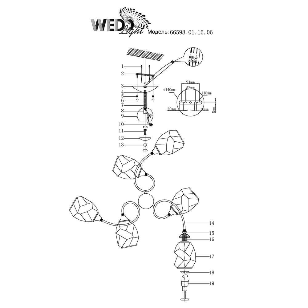 Тип крепления люстры: на штанге