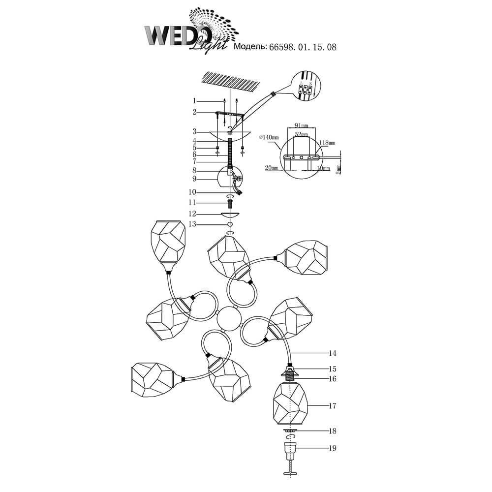 Тип крепления люстры: на штанге