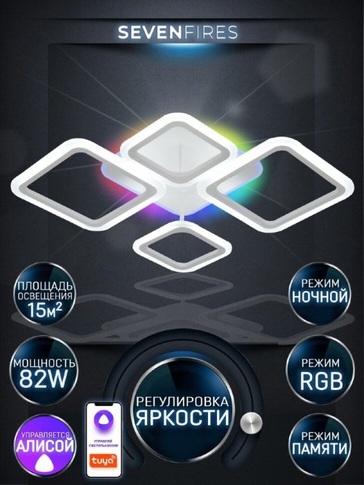 Станьте первым, кто оставит отзыв о товаре Потолочная светодиодная люстра Seven Fires Karoli SF7105/5C-WT-RGB.