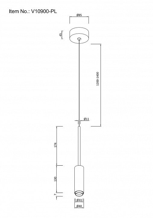 Длина подвеса, мм: 1400