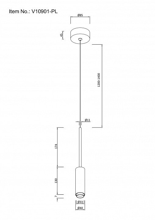 Длина подвеса, мм: 1400