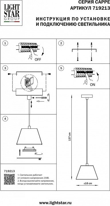 Станьте первым, кто оставит отзыв о товаре Подвесной светильник Lightstar Cappe 719213.