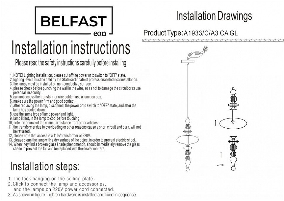 Станьте первым, кто оставит отзыв о товаре Подвесной светильник Belfast Herbison A1933-C-A3 CA GL.