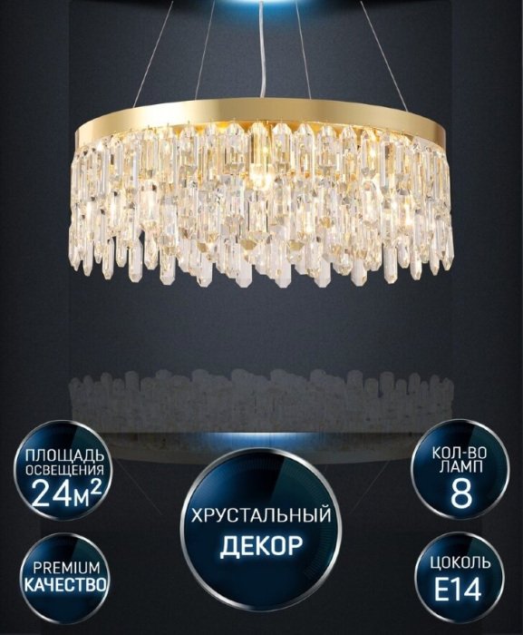 Станьте первым, кто оставит отзыв о товаре Подвесная люстра Lumien Hall Dzhokin LH0059/8P-GD-CL.
