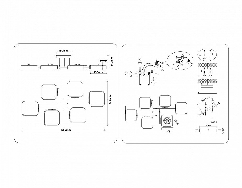 Точная форма - Несколько плафонов (Для подвесных люстр, потолочных люстр и подвесных светильников): Плафоны симметрично вдоль горизонтальной оси