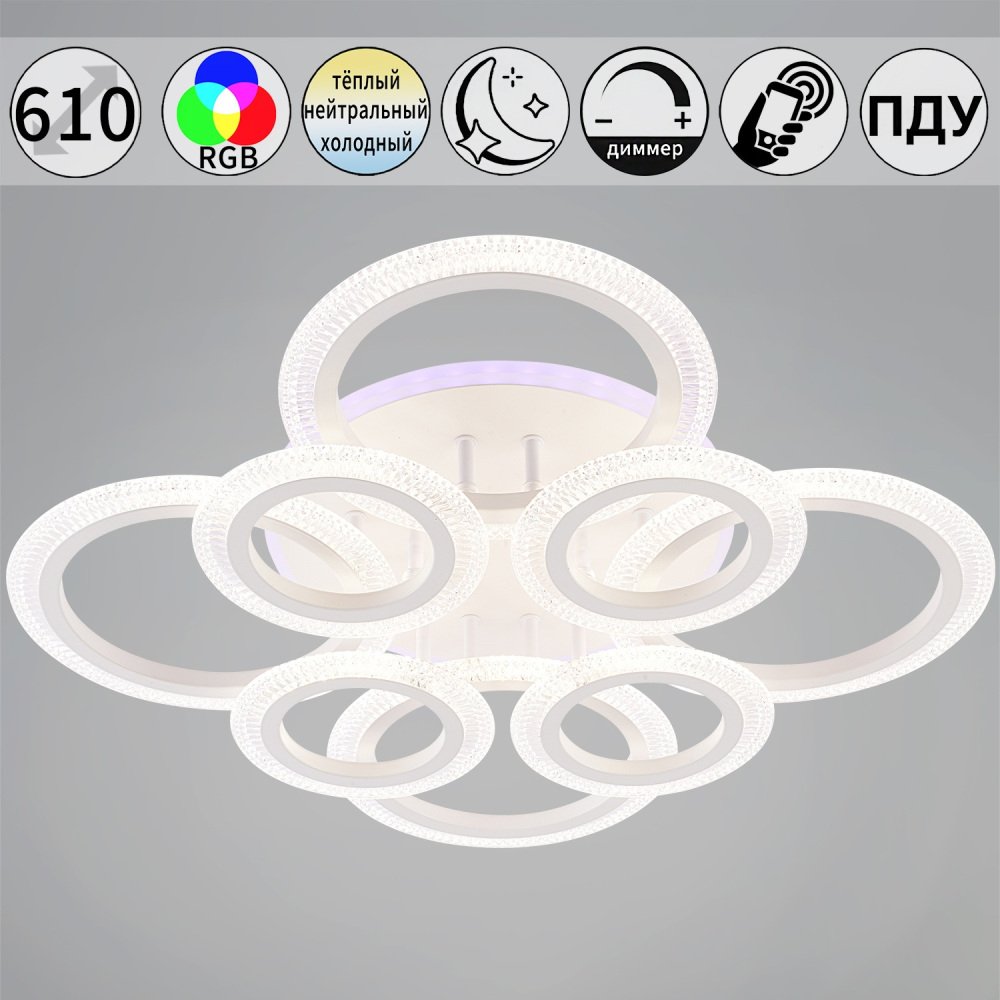 Главная Люстры и потолочные светильники Светильник потолочный Reluce 09837-0.3-4+4A WH (RGB)
