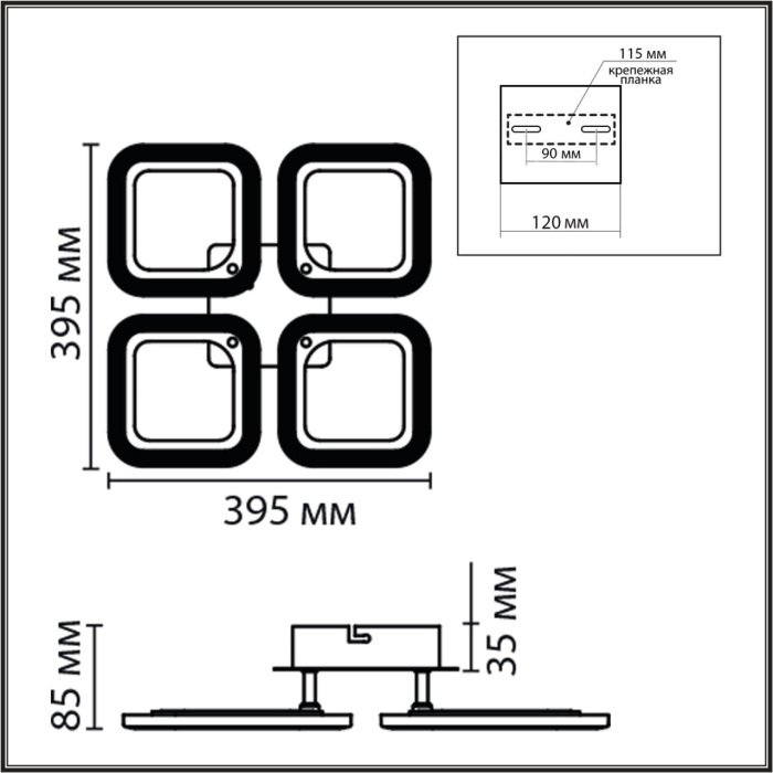 Форма плафона: Квадратный