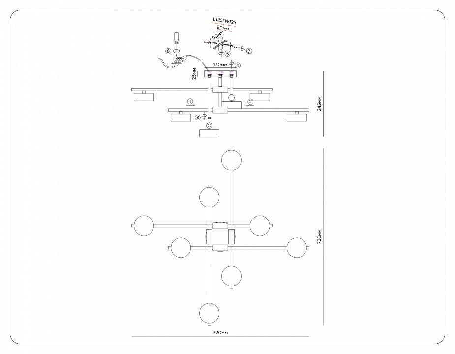 Основная форма светильника (Для подвесных люстр, потолочных люстр и подвесных светильников): Несколько плафонов