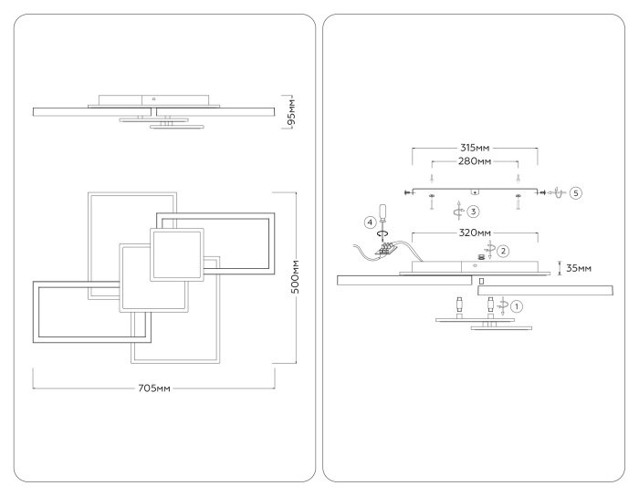Основная форма светильника (Для подвесных люстр, потолочных люстр и подвесных светильников): Без плафонов