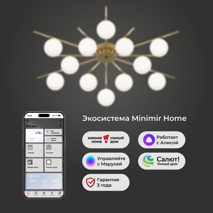 Станьте первым, кто оставит отзыв о товаре Потолочная люстра Sabina 302001/12 латунь Smart.