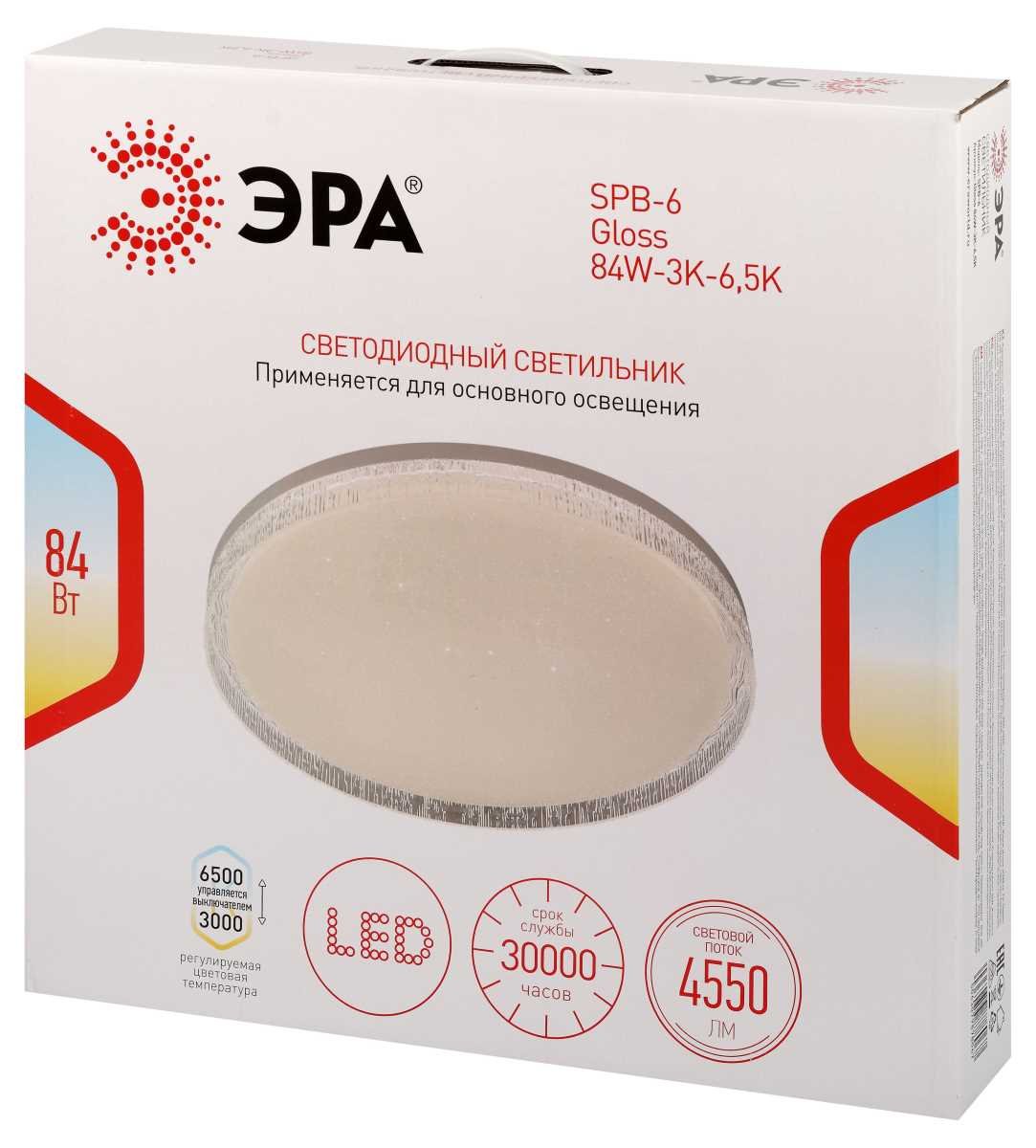 Станьте первым, кто оставит отзыв о товаре Светильник потолочный светодиодный ЭРА Классик без ДУ SPB-6 Gloss 84W-3K-6,5K 3000-6500К белый Б0070196.