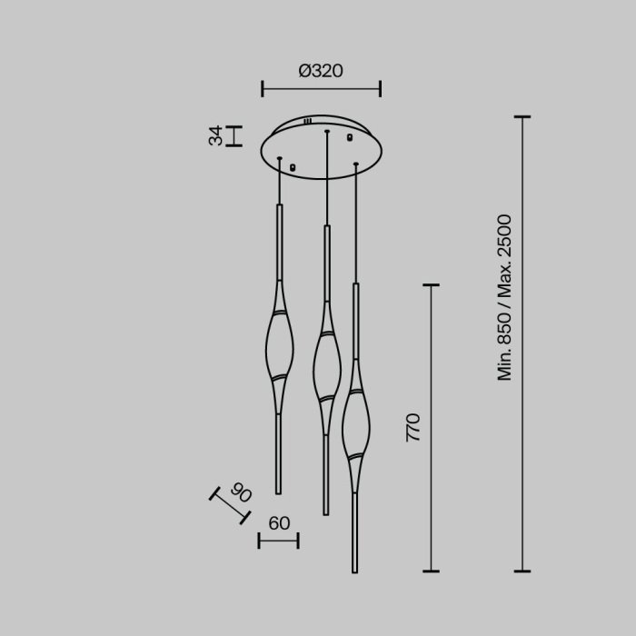 Длина подвеса, мм: 1000