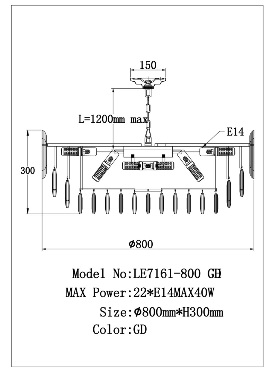 Станьте первым, кто оставит отзыв о товаре Подвесная люстра Jacqueline LE7161/800 GD.