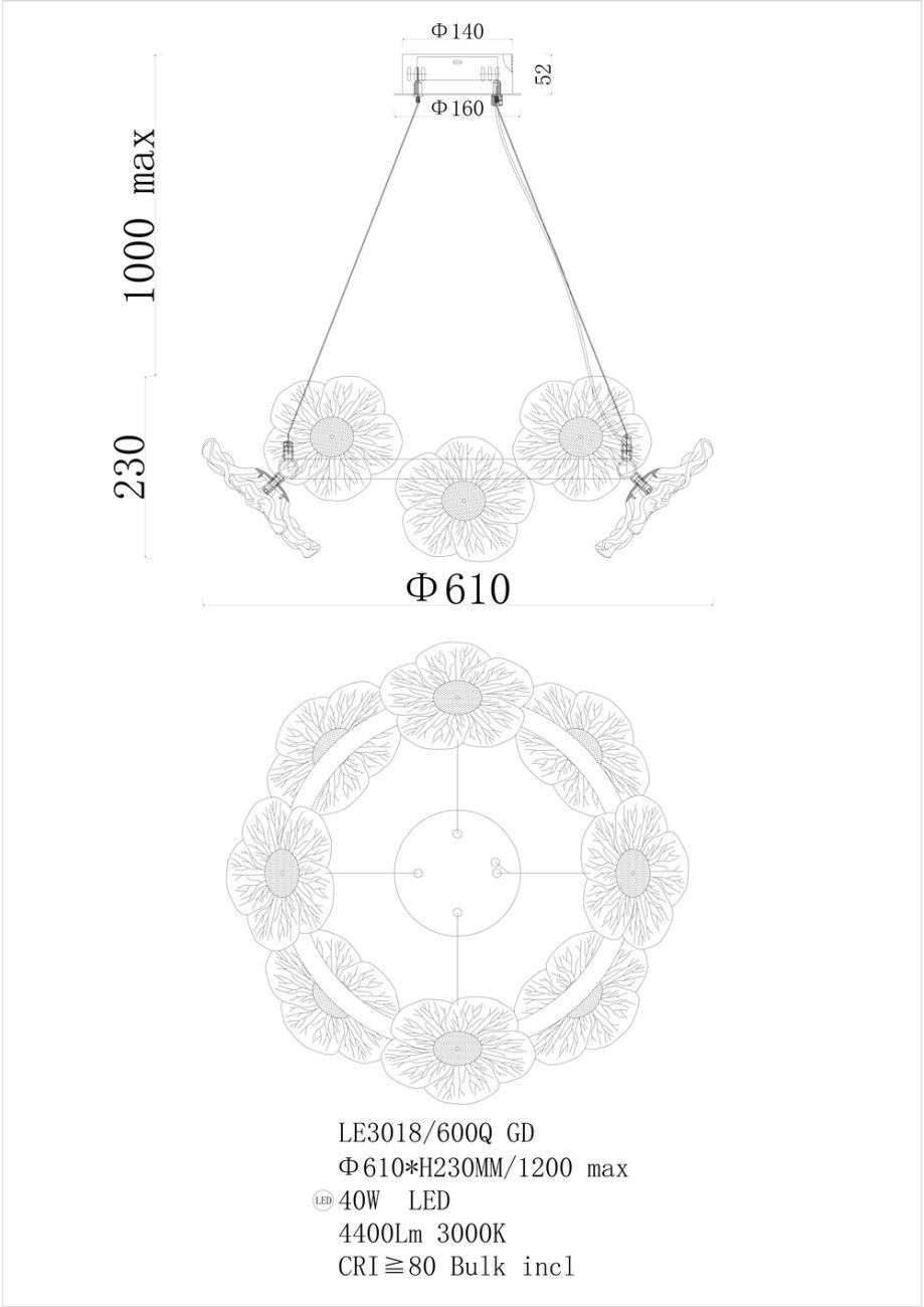 Подвесная люстра Violetta LE3018/600Q GD