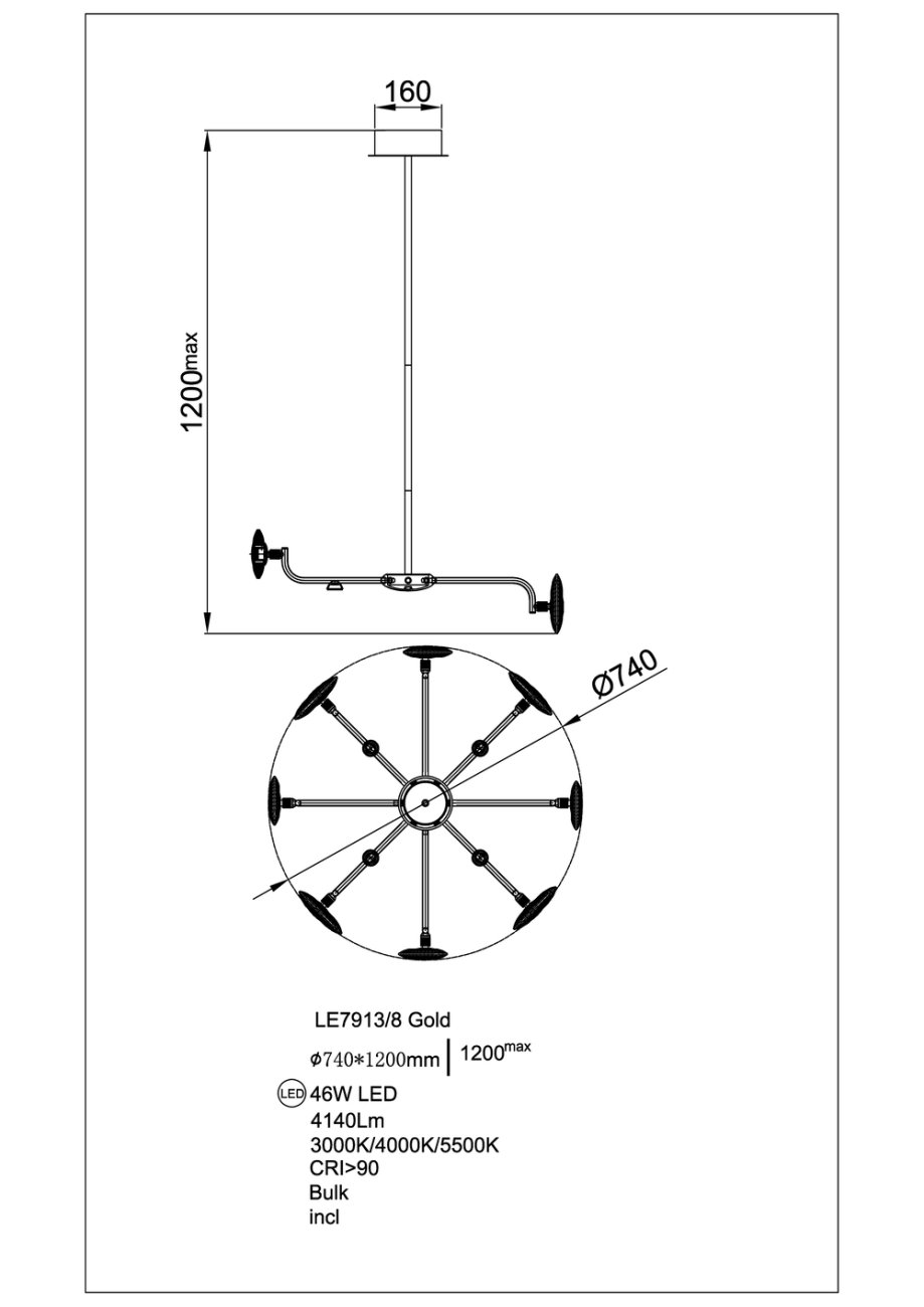 Подвесная люстра Iris LE7913/8G Gold