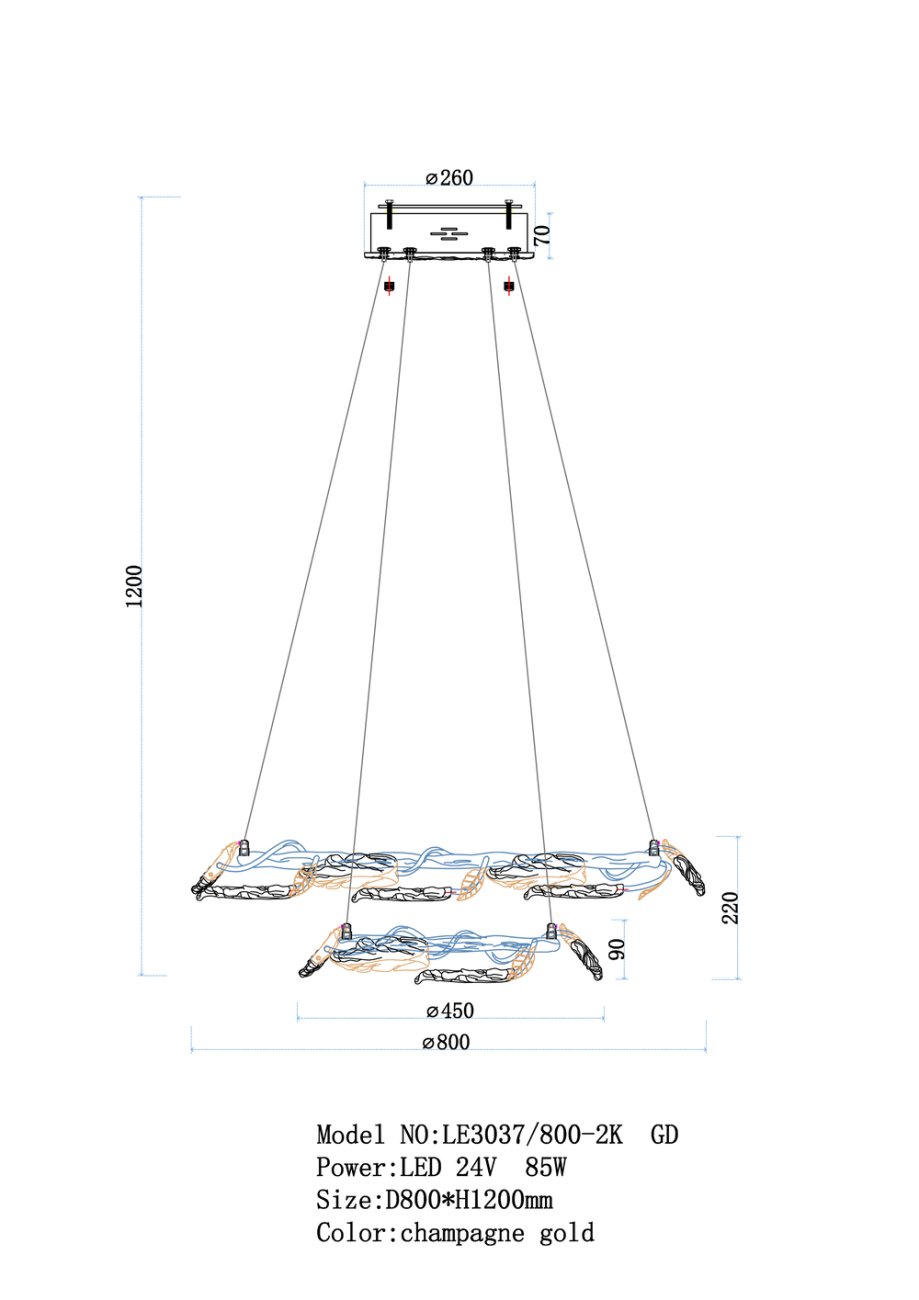 Станьте первым, кто оставит отзыв о товаре Подвесная люстра Olivia LE3037/800-2K GD.