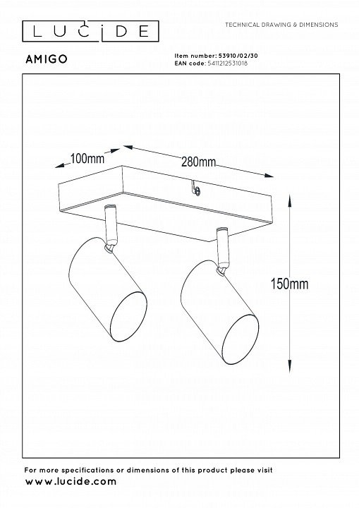 Станьте первым, кто оставит отзыв о товаре Спот Lucide AMIGO 53910/02/30.