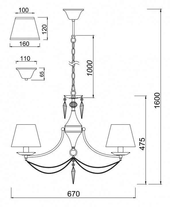 Длина подвеса, мм: 1000