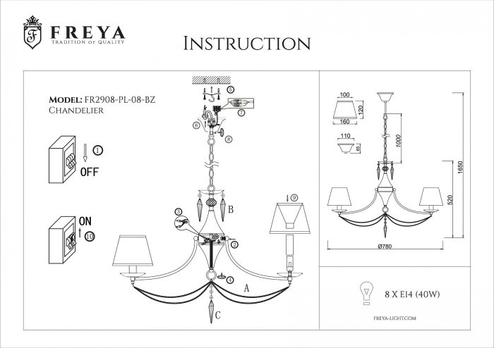 Станьте первым, кто оставит отзыв о товаре Подвесная люстра Freya Garcia FR2908-PL-08-BZ.